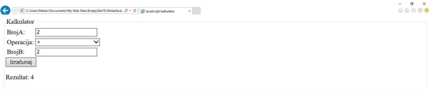 In the following example, the calculator from the second chapter is modified. In this case, numbers are entered in text fields, while the mathematical operation is selected from a drop-down menu.